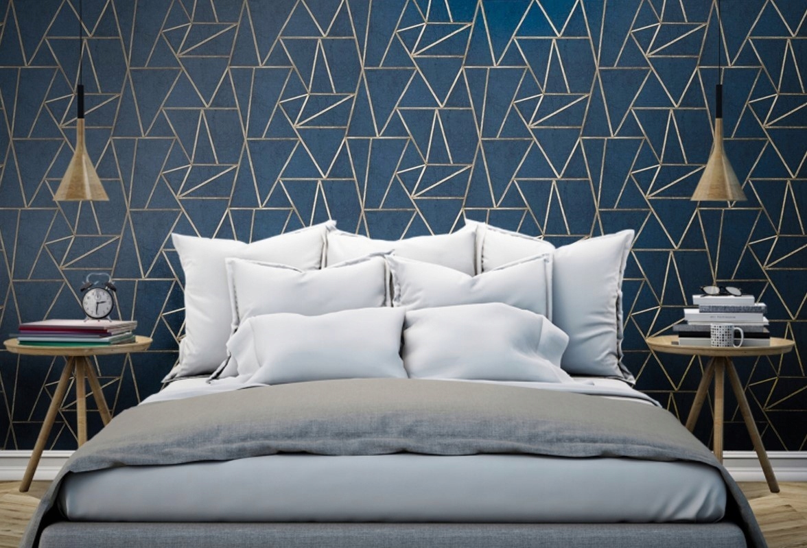 Tapeta Scienna Z Granatowa Abstrakcja I Zlotem Navy Blue Gold Tapety Do Sypialni Allegro