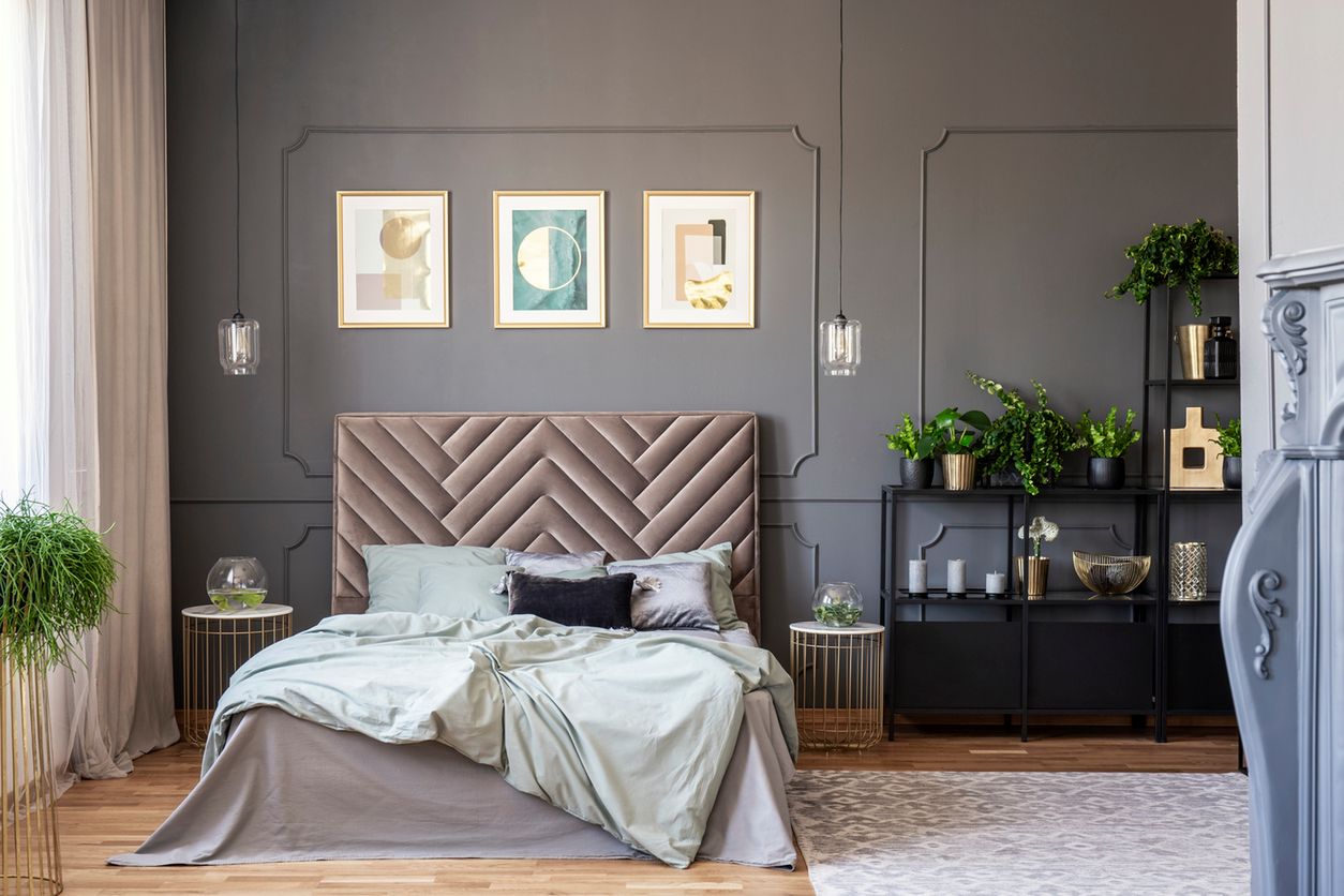 Mieszkanie W Stylu Glamour Propozycje Dekoracji Wnetrz Tapeta Sypialnia Szara