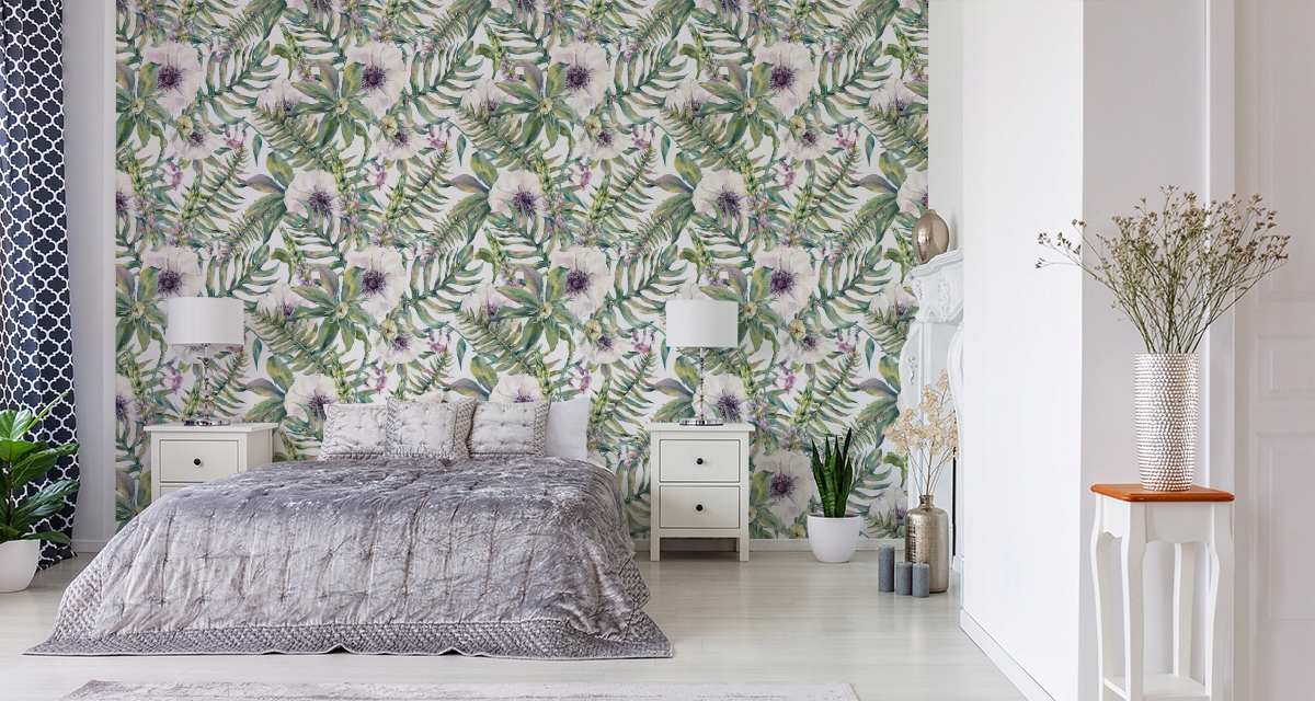 Tapeta Liscie Kwiaty Paproc Akwarela Do Sypialni 8172539065 Allegro Pl Glamour Styl Nowojorski Glamour Tapeta Do Sypialni