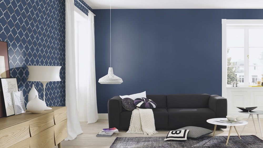 Tapeta Marokanska Koniczyna Flizelina Granatowa Sklep Z Tapetami Sciennymi Remal Lozko Sypialnia Wymiary
